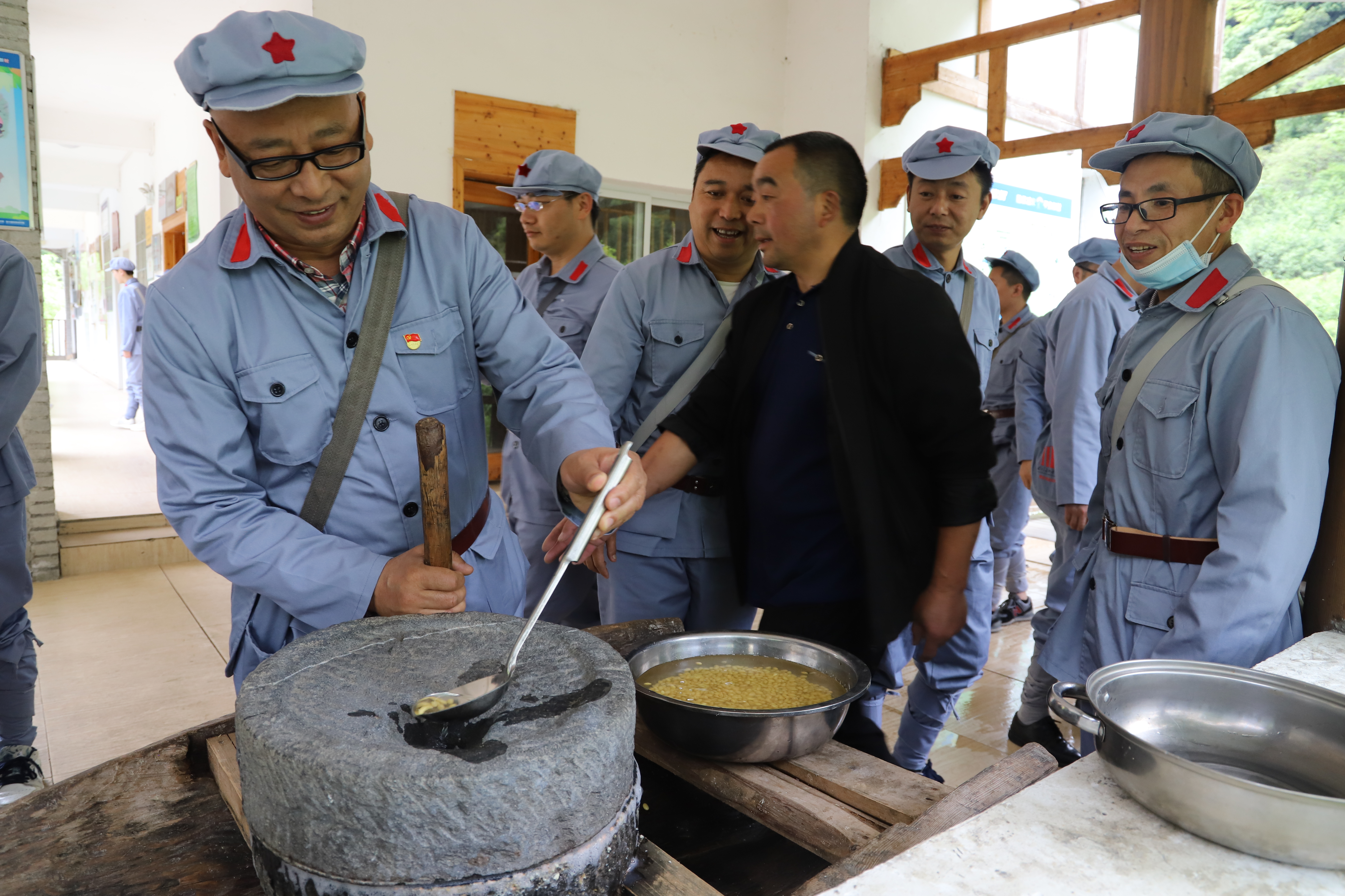 2021年5月20日,雅安夾金山分院黨史學(xué)習(xí)教育培訓(xùn)班體驗農(nóng)耕生活之推磨子